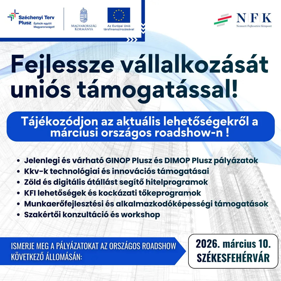 Fejlessze vállalkozását uniós támogatással: országos vállalkozásfejlesztési roadshow indul