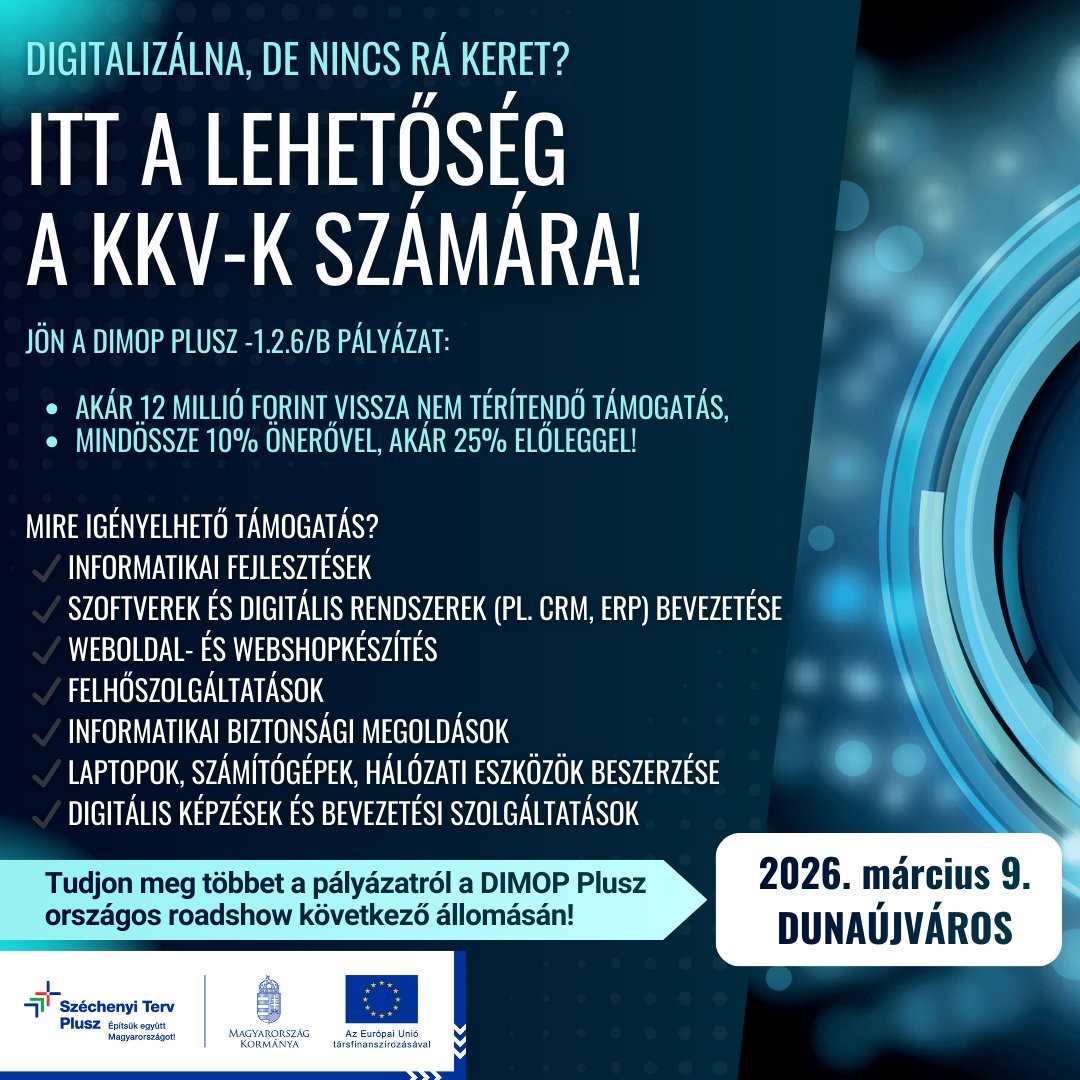 Megjelent a "KKV-k növekedési lehetőségeinek támogatása a digitális infrastruktúra és transzformáció elősegítésére (III. kör, Budapest)" című (DIMOP Plusz-1.2.6/C-26) felhívás